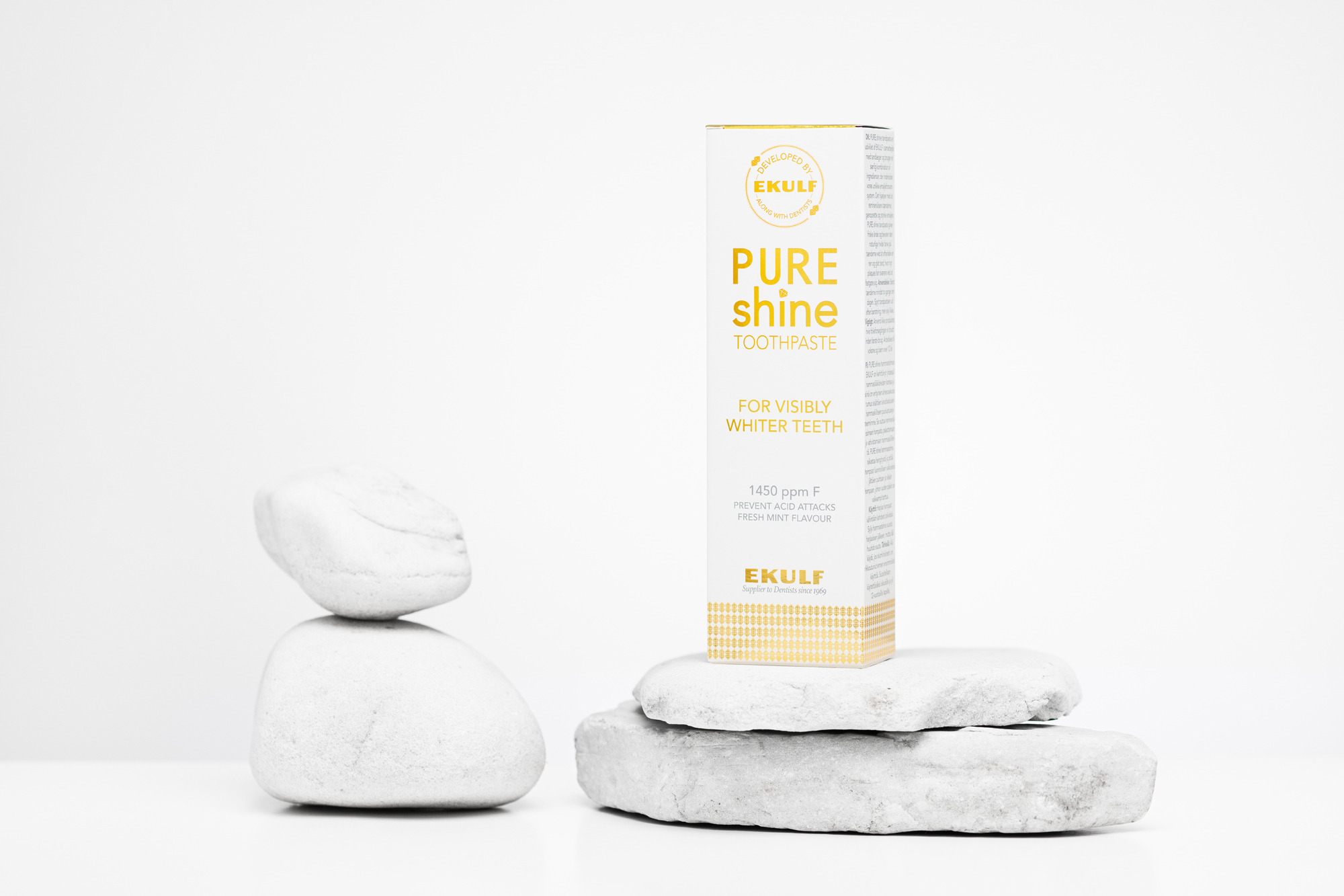 PURE shine toothpaste helps you keep the natural white color of your teeth. The toothpaste is developed in collaboration with dentists and contains Papain – a natural enzyme extracted from the papaya fruit. Papain efficiently cleanses the enamel, leaving the outer surface of the tooth clean and smooth, which makes it harder for new plaque to attach.
