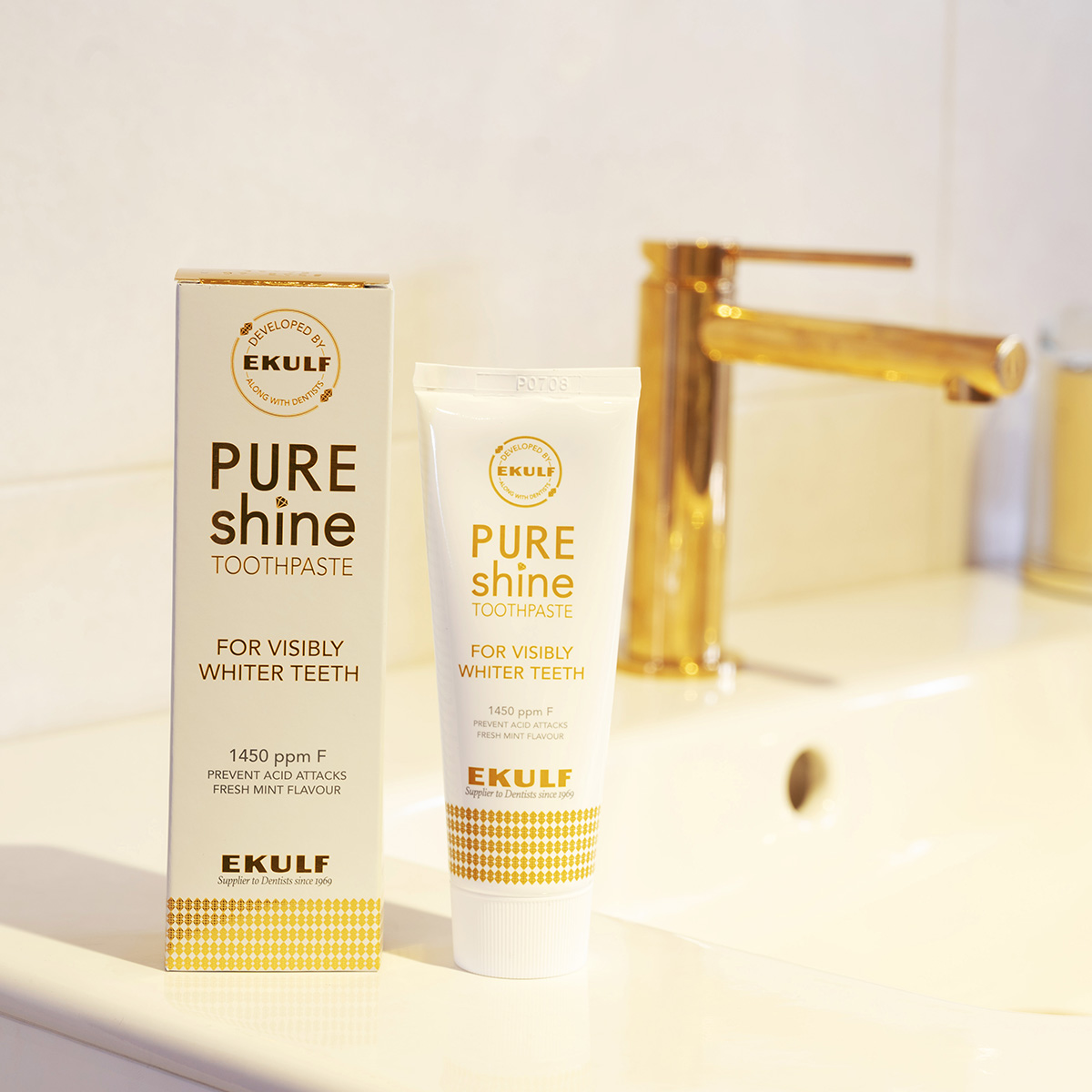 Use PURE shine Toothpaste together with PURE shine Whitening strips for a more lasting result.